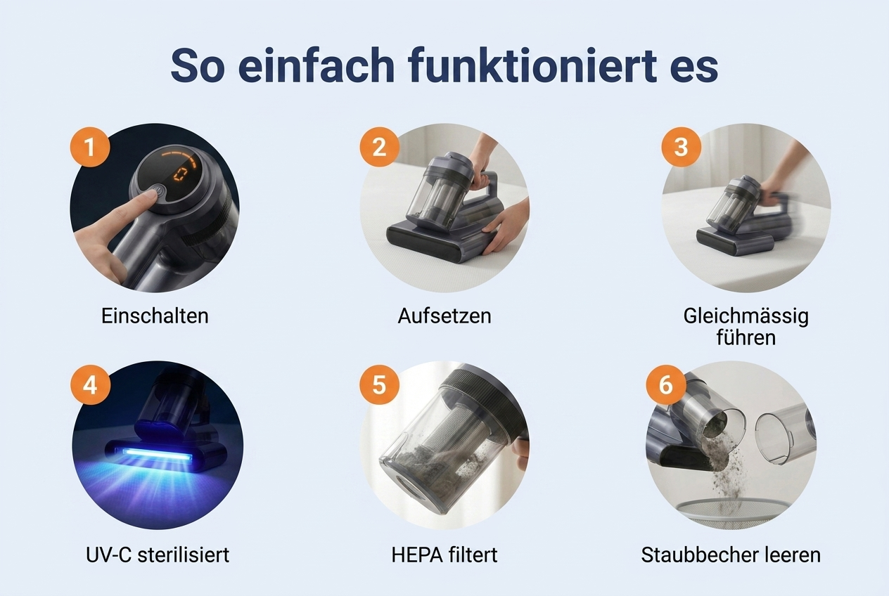Einmal pro Woche für dauerhaft milbenfreie Schlaf- und Wohnbereiche. Besonders für Allergiker empfehlen wir wöchentliche Anwendung.